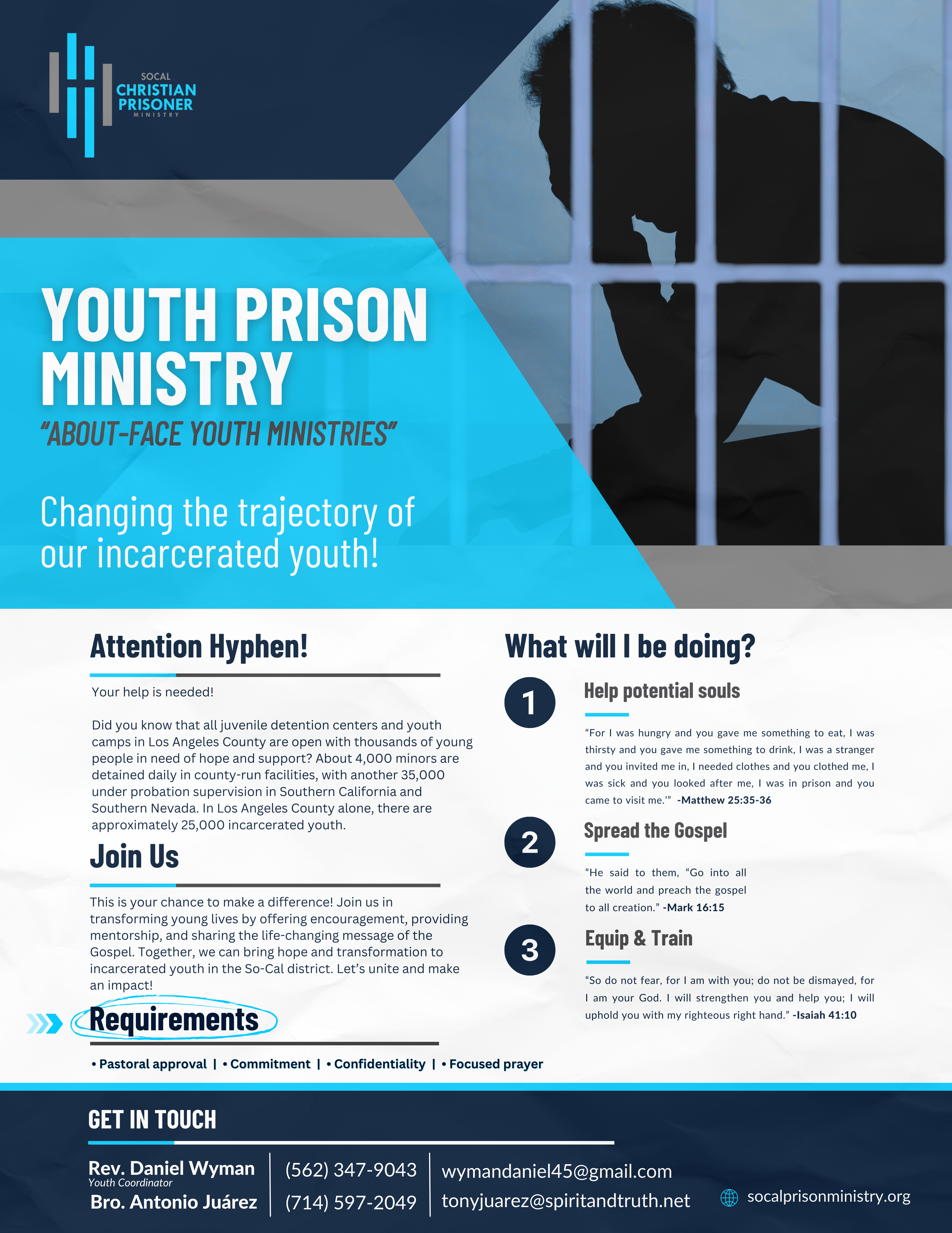 At SoCal District Prisoner Ministry, we recognize the diverse and dynamic nature of incarceration within our region. Our commitment to making a positive impact extends to a wide array of individuals facing the challenges of the criminal justice system.
